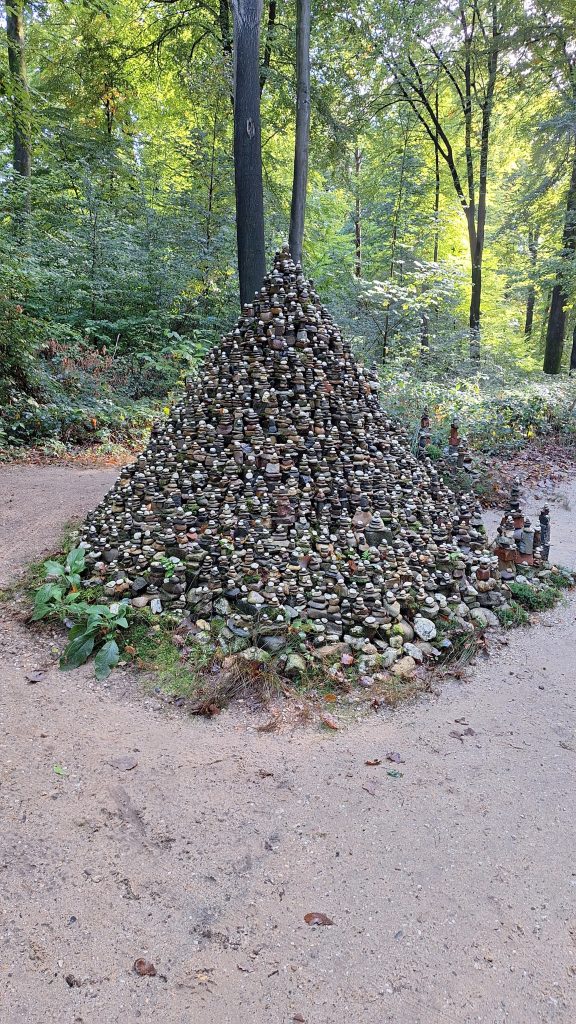 Mit Rucksack oder Fahrrad bringt er immer wieder Steine zu seiner „Wirkungsstätte“ und erschafft eine ganz persönliche geprägte Steinlandschaft. Markus Gern hat 2022 sehen müssen, dass jemand (angeblich eine psych. erkrankte Frau) seine liebevolle Anlage völlig zerstört hat. Kaum vorstellbar, dass er alles wieder so detailliert neu aufgebaut hat.